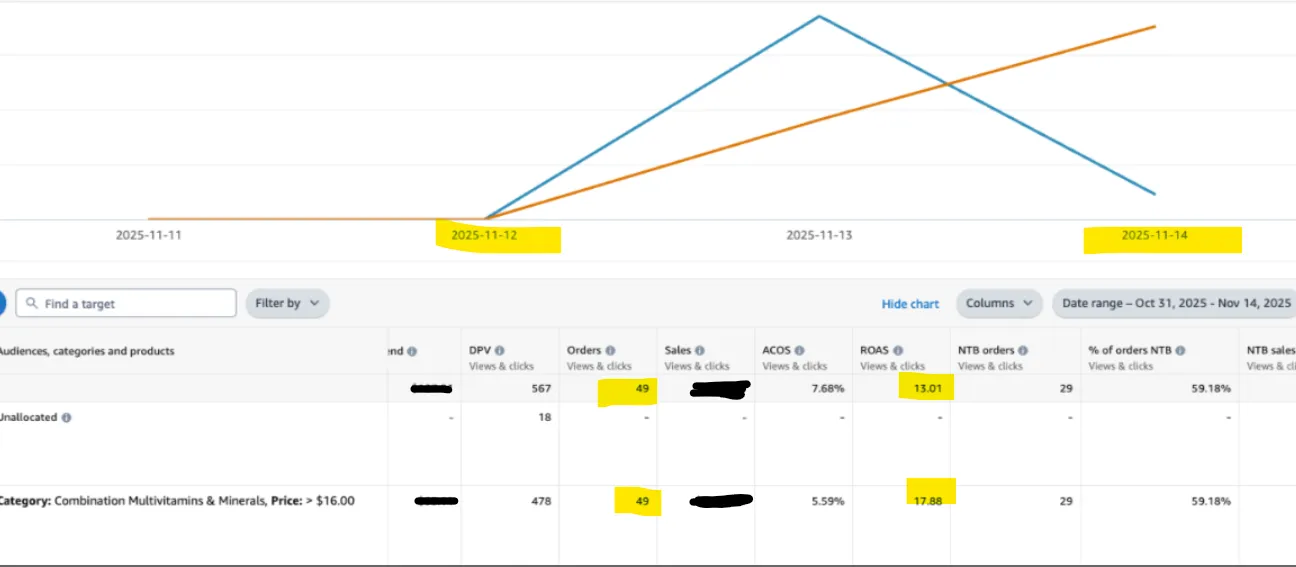 Our category-level Amazon ads alone generated 49 orders and a 13X ROAS in just two days.