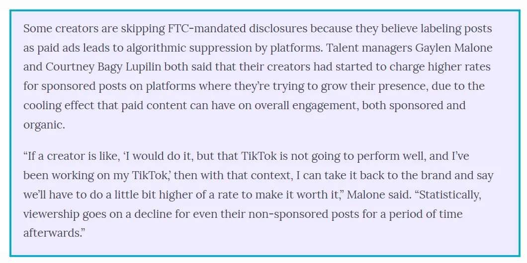 Besides, not every influencer wants to follow FTC guidelines or other existing legislation, as Digiday explains.