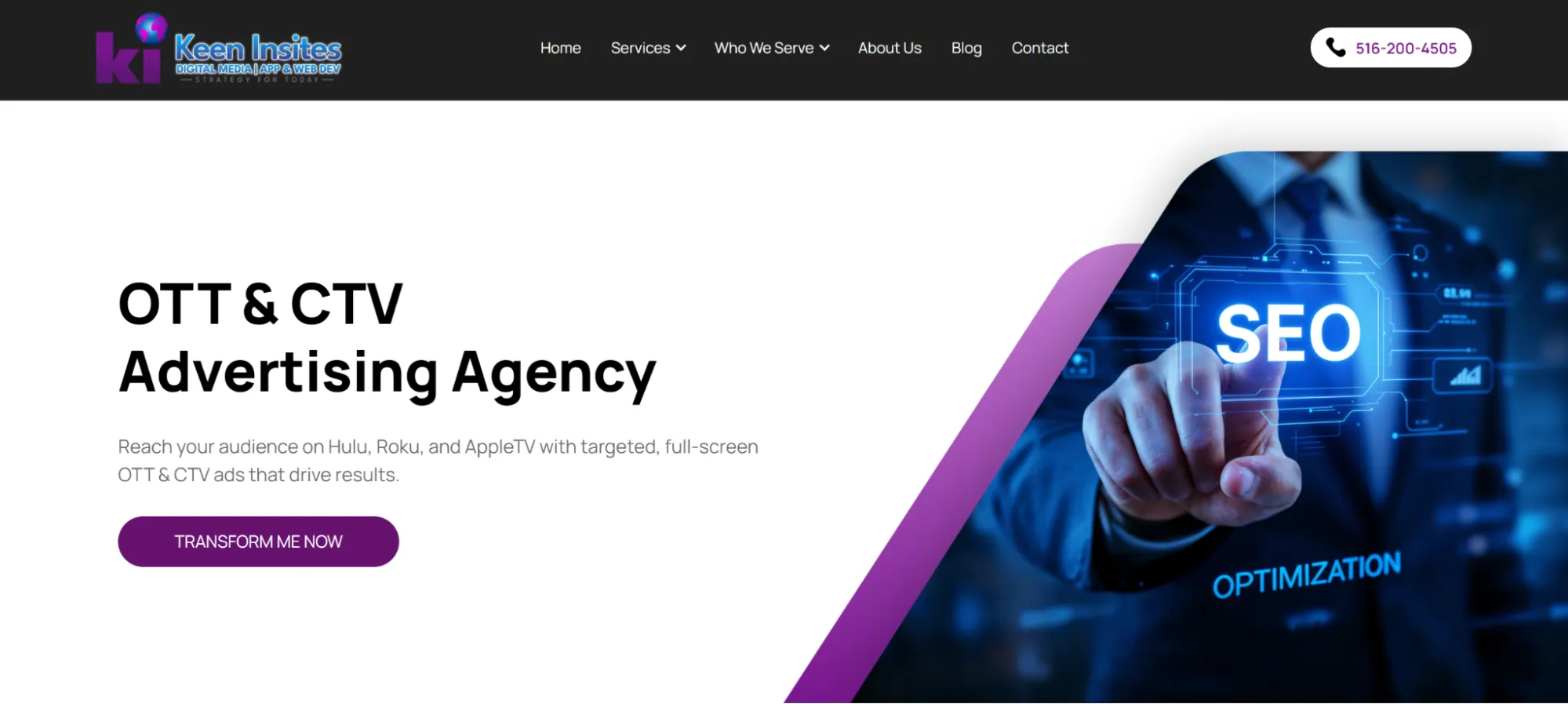 Reason to work with Keen Insites: You get 100% viewable ads across top CTV platforms, backed by AI targeting and cross-channel expertise that lifts performance beyond TV standards.